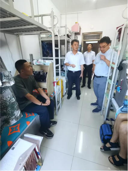 党委书记李欣明带领辅导员检查学生宿舍