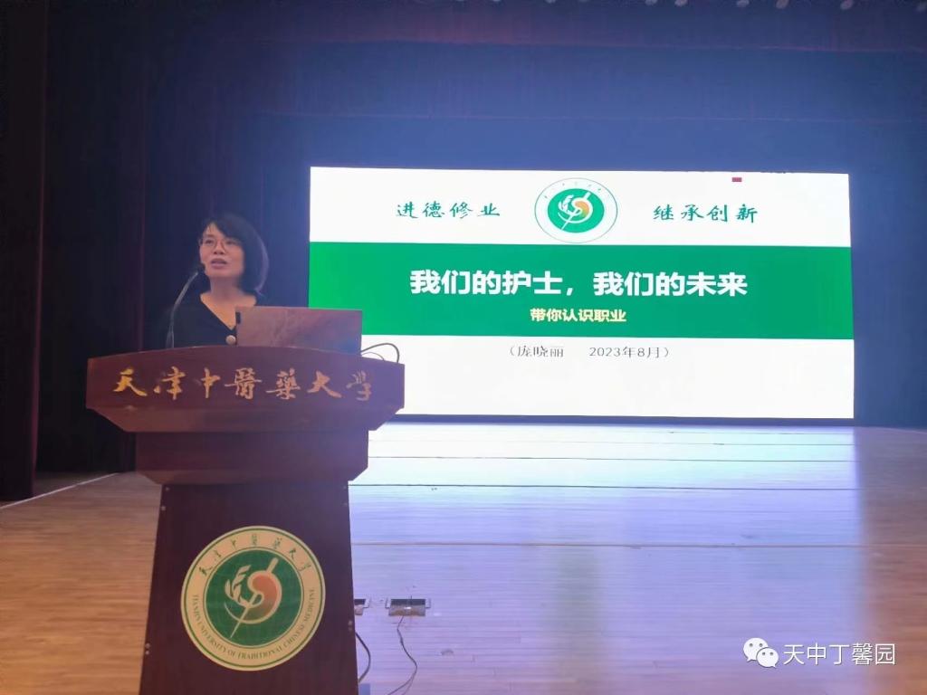 会议伊始,护理学院院长庞晓丽老师以“我们的护士 我们的未来,带你认识护理职业”为主题,分别从护理本科生的培养、学院办学定位、护理职业发展为新生进行职业发展规划与教育。她就我国护士职业群体现状,用详细的数据为同学们讲解国家对护理人群的支持与需求,同时列举出全民健康相关政策,强调护士的未来职业道路选择愈加丰富,护理服务向“专、精、尖”发展。