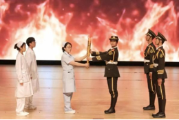 总结表彰会正式开始前,学院举办了神圣的南丁格尔之火传递仪式。院党委书记李欣明同志从南丁格尔像提灯中引燃南丁格尔精神之火,并传递到副院长张春梅老师手中。随即圣火沿着既定路线,由学院优秀老师及优秀毕业生、在校生代表接力传递至大学生活动中心会场,最终由院长庞晓丽老师点燃会场大屏幕,并将火炬传递到2022级护生手中。在一代代护理人的传递下,南丁格尔精神之火点亮了每个护生的未来和希望。
