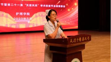 为庆祝第112个国际护士节,弘扬南丁格尔精神,增强护生职业认同感和时代责任感,护理学院于5月12日在大学生活动中心报告厅召开了“践行初心 怀抱梦想 踔厉奋发 扬帆远航”庆祝“5·12”国际护士节暨第二十一届“天使风采”学术技能节总结表彰会。校党委副书记李鑫,南开医院临床学院副院长王玉玲,天津肿瘤医院护理部主任强万敏,天津医科大学朱宪彝纪念医院护理部主任孙明艳,第一附属医院护理部主任董丽,第二附属医院护理部主任王树苓,校党委常委、宣传部部长崔强,校党委常委、组织部部长朱莹、机关党委书记、督查室主任张岚,党委学工部部长东晓明,校团委书记张晶,校办公室副主任张明,党委学工部副部长范筠娜、李雷、王楠,研工部副部长阎丽娟,中药学院党委副书记王琦、针灸推拿学院党委副书记胡涛,中西医结合学院党委副书记周尉东,中药制药工程学院党委副书记金瑞、医学技术学院党委副书记李欣,护理学院全体领导,各学院、附属医院团委书记和教师代表,以及护理学院2022级全体同学参加了活动。