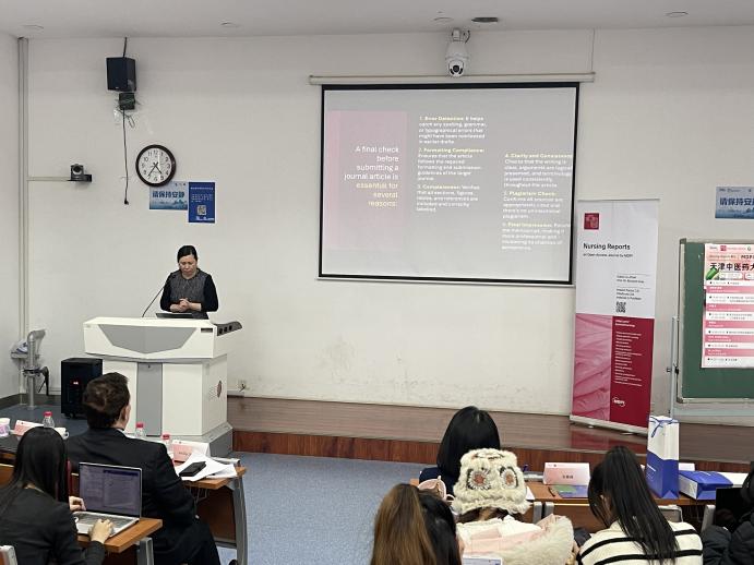 2026年1月6日—7日,为提升师生学术发表能力、拓展国际学术视野,天津中医药大学护理学院特邀国际知名学术出版机构MDPI专家团队来校,举办“开放获取与国际期刊投稿策略”主题培训会,开展护理专业科研成长与发展国际学术交流活动。本次活动旨在帮助护理学院师生掌握高水平学术成果的传播与发表规范,推动护理学科研究走向国际。活动由护理学院院长庞晓丽担任会议主席,副院长张春梅主持。Nursing Reports期刊责任编辑许馨元、MDPI出版专员李耀光、澳大利亚科廷大学终身名誉教授Phillip Della及高级讲师Jo Zhou博士担任主讲嘉宾,学院百余位师生参与。