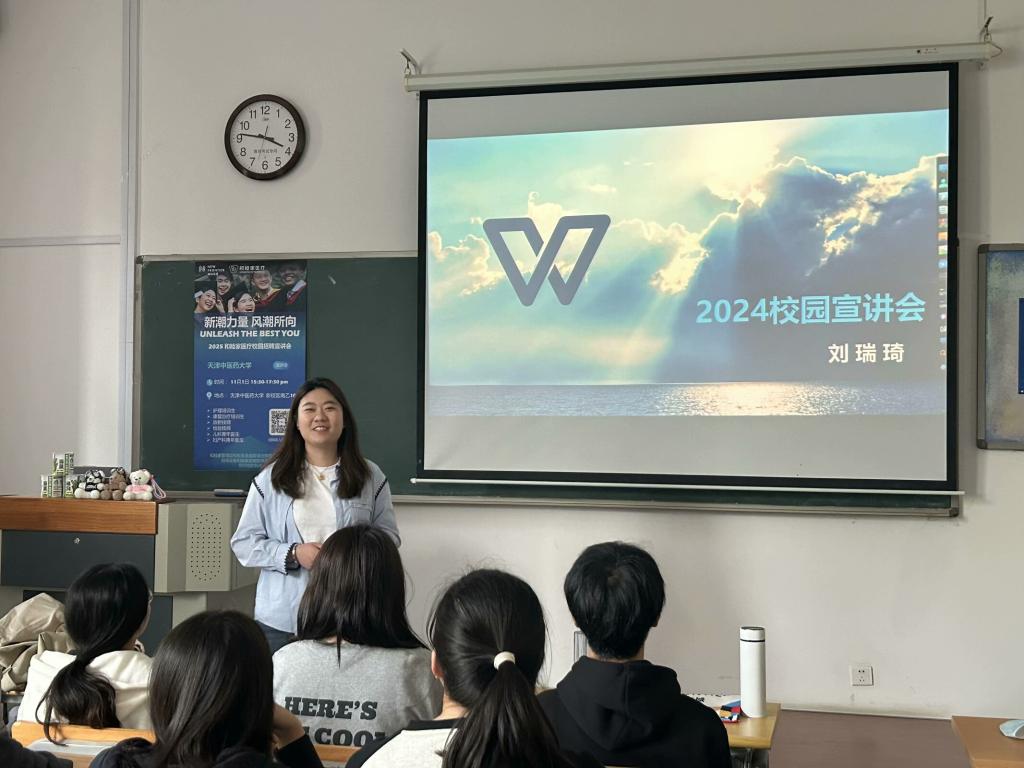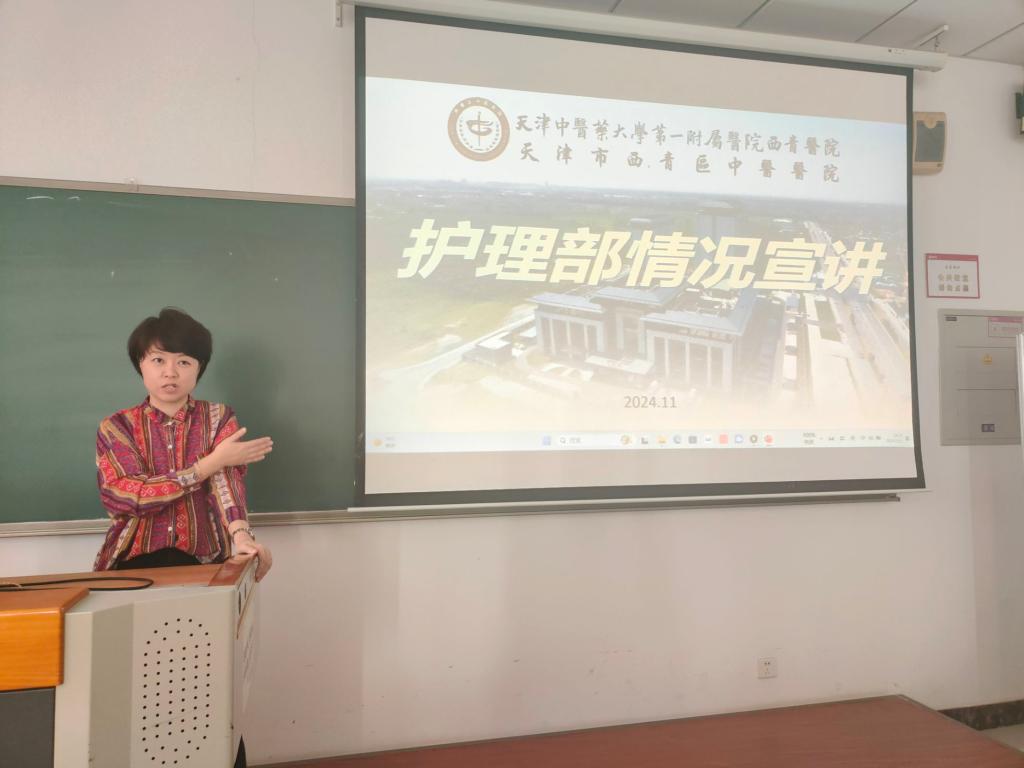 下午14:00,天津市西青区中医医院于北甲401教室进行校园宣讲,护理部主任率先介绍医院概况,涵盖基础情况、医院设置、人员构成和科室设置,同时详细讲解护理部情况。随后,西青区中医医院党总支书记孙超阐述了当前中医护理发展形势,建议同学们深入理解中医护理基础理论知识,熟练掌握艾灸、拔罐、推拿按摩等常见中医护理技术操作。最后,院领导介绍医院招聘情况,包括岗位数量、要求条件,以及简历筛选、面试安排等流程信息,使同学们清楚西青区中医医院招聘详情。