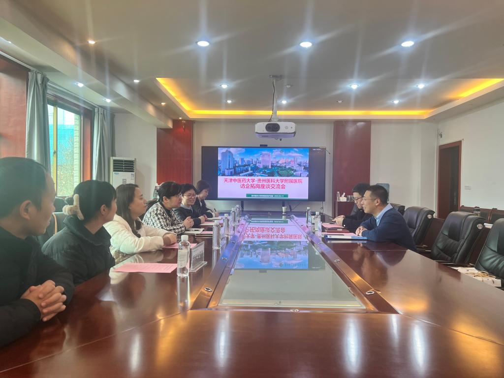 在贵州医科大学附属医院,我院与护理部副主任顾颖、教学科副科长邹杨、罗朝霞,护理学院教学科马丽以及我院留院往届优秀毕业生展开深入座谈。我院党委副书记矫正强介绍了我院护理专业学生培养情况,强调学生具备扎实的专业知识和实践能力,希望为贵州地区输送更多优秀的护理人才。护理部副主任顾颖介绍了贵州地区医院近年来招聘现状以及医院临床工作对护理人才的实际需求,并表示愿意与我院建立更紧密的合作关系,为学生提供更多的实习和就业岗位,共同培养适应医疗行业需求的优秀护理人才,促进护理工作高质量发展。