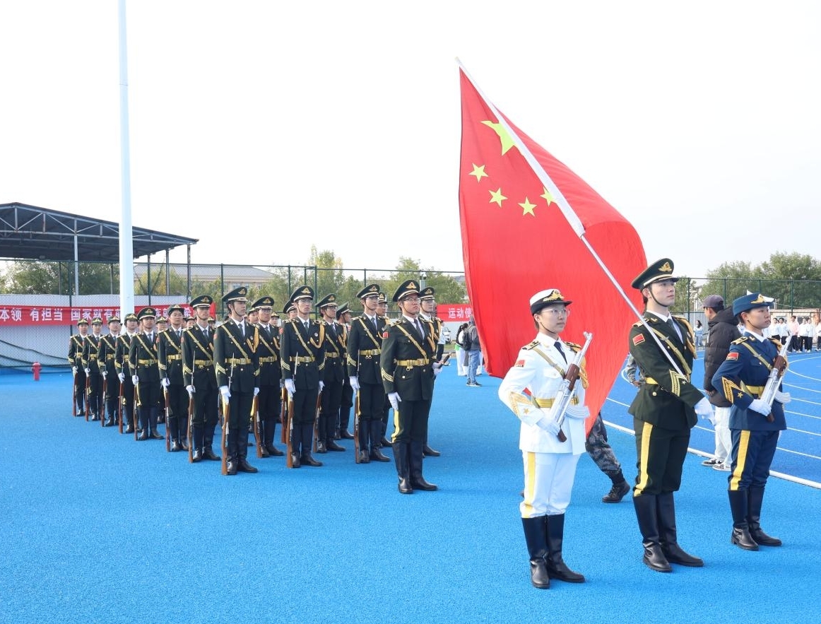 在开幕式上,国旗护卫队迈着铿锵有力的步伐,在操场上庄严入场,鲜艳的五星红旗迎风飘扬,激发了全体师生的爱国热情与运动激情。