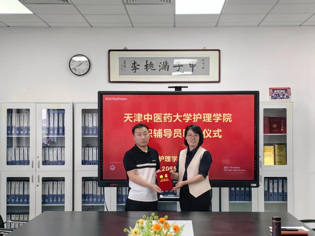 接着,护理学院院长庞晓丽为宋建钢老师颁发聘书,并感谢马克思主义学院选派宋建钢老师来护理学院担任兼职辅导员,希望宋建钢老师主动联系对接学院的专业课教师、辅导员老师以及学院学生,了解师生的思想政治情况和学习工作需求,提供必要的理论指导和帮助,同时创新工作方法,丰富工作内容,以此为契机提升护理学院思想政治理论水平,推动护理学院课程思政教学改革,提升学生思想政治教育工作科学化水平,纵深推进护理学院三全育人工作新格局。